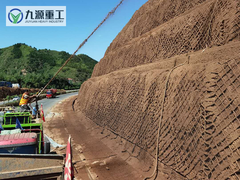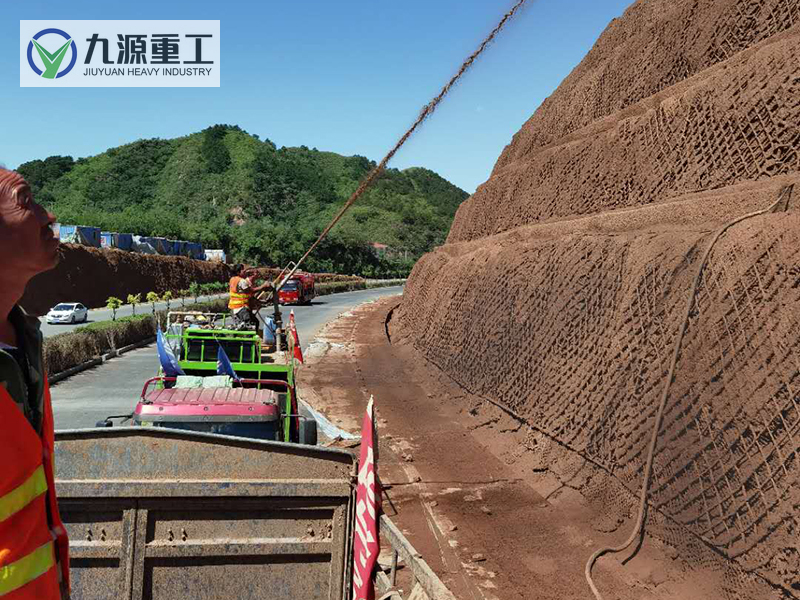 噴播機(jī)是應(yīng)用于邊坡綠化的專業(yè)設(shè)備,通過(guò)本設(shè)備將土壤基質(zhì)、綠化草籽、保水劑、黏合劑、肥料等,在噴播機(jī)攪拌罐中與水混合成膠狀的漿液,用泥漿泵將其噴播于坡面上。由于漿液中含有保水材料、黏合材料、各種養(yǎng)分,在保證了植物生長(zhǎng)所需的水和其它營(yíng)養(yǎng)物質(zhì)來(lái)源的同時(shí)有效防止雨水沖刷對(duì)噴播材料的破壞,故而植物能夠健康、迅速地成長(zhǎng)。